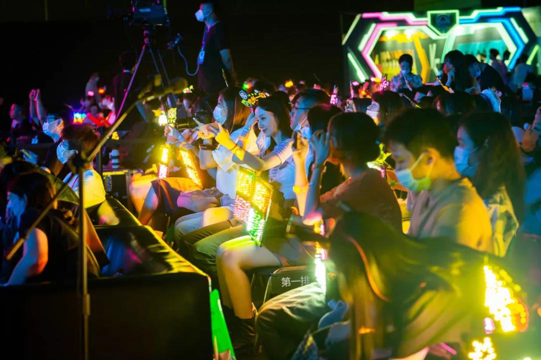 本次K甲總決賽還在賽場外部布置了體驗區(qū),充滿科幻未來感的霓虹燈寫出了幾個極具代表性的客家話“馬概”“唔輸多掐”“釀滿講”;而惠州當(dāng)?shù)氐奶厣穗嚷橼槿馔?、釀豆腐、博羅酥糖同樣被“高亮”標(biāo)出,提醒著吃貨們這里有不容錯過的美食;惠州地標(biāo)建筑合生大橋、朝京門的輪廓同樣被勾勒出來點亮著體驗區(qū),喚醒著觀眾們的城市記憶。